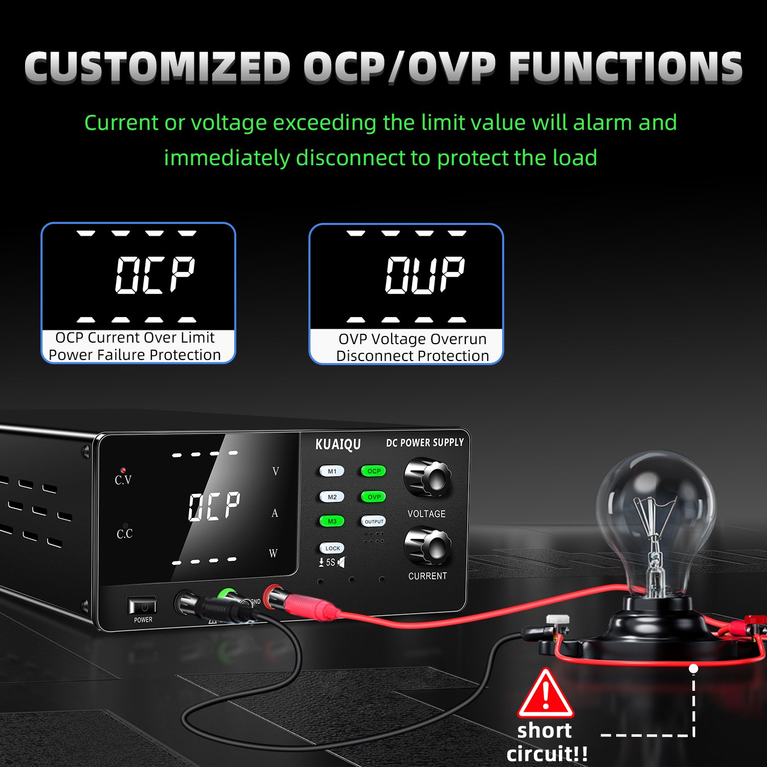 • Función de almacenamiento de memoria de 4 grupos para guardar y recuperar rápidamente configuraciones de voltaje/corriente preestablecidas, eliminando ajustes repetitivos para tareas recurrentes.