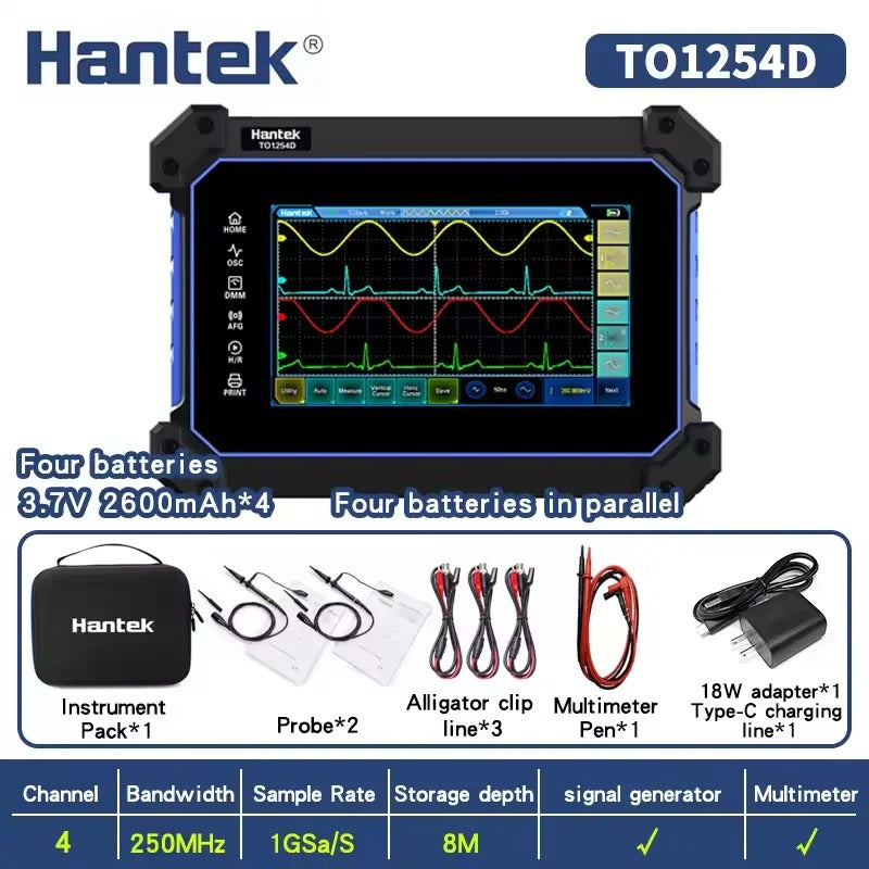 Need a powerful, portable 4-channel handheld oscilloscope? The Hantek TO1000 Series (TO1154D/TO1204D/TO1254D) fits electronic testing, R&D, and troubleshooting. With high sampling rates, deep storage, plus integrated signal source and multimeter, it’s ideal for pros and enthusiasts.