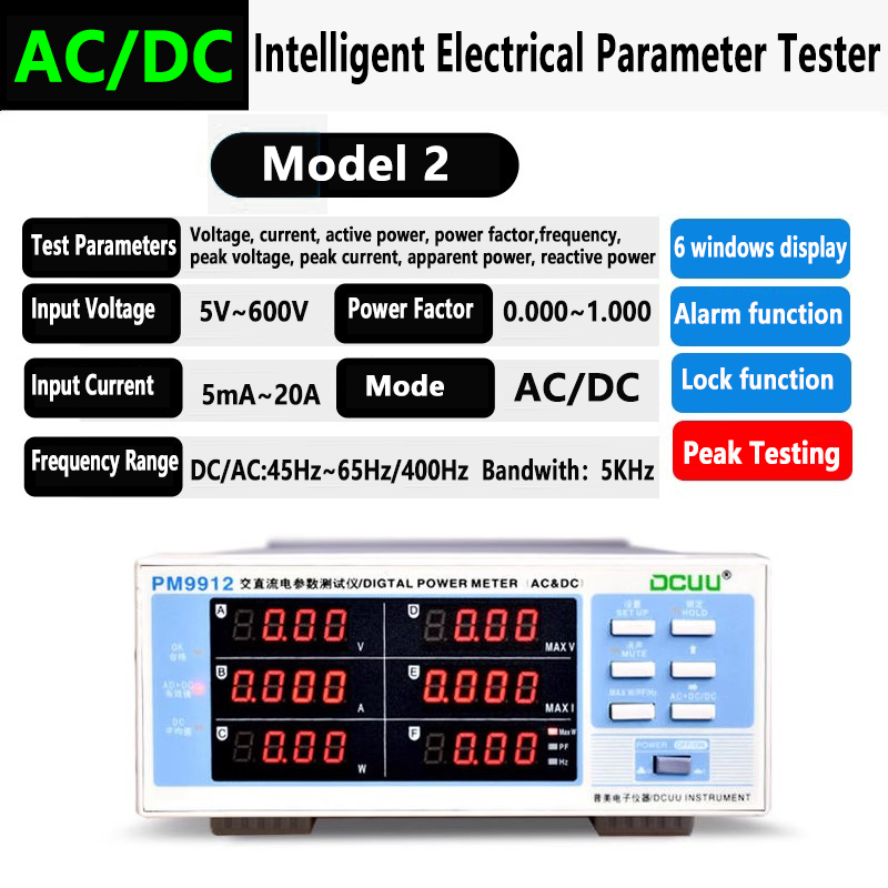 Affichage à 6 fenêtres, fonction d'alarme, fonction de verrouillage, test de crête