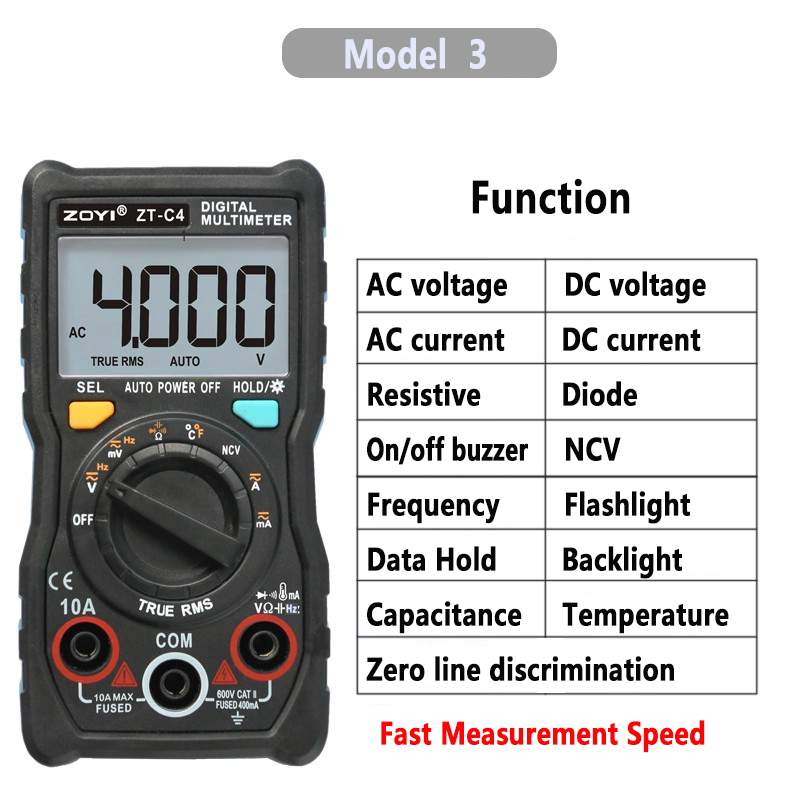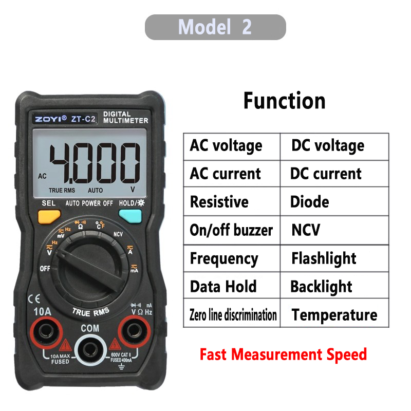 Valeur efficace vraie (True RMS), NCV, maintien des données, arrêt automatique