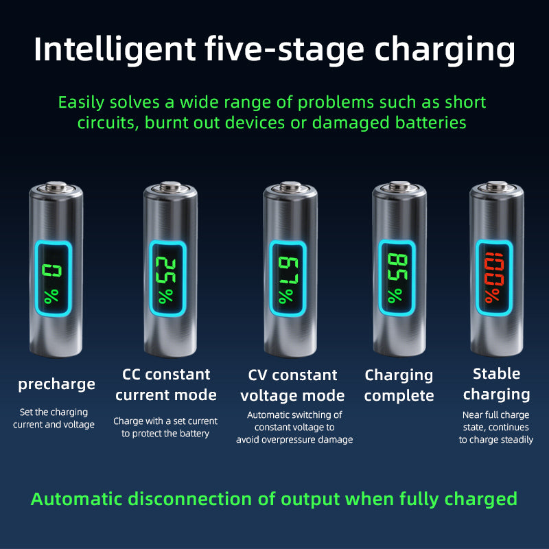 3️⃣【Overcharge Protection & Auto Power-Off】: Built-in overcharge protection automatically detects the battery charging status. It cuts off power automatically when the battery is fully charged, and the BATTERY light turns green to avoid battery damage from overcharging.
