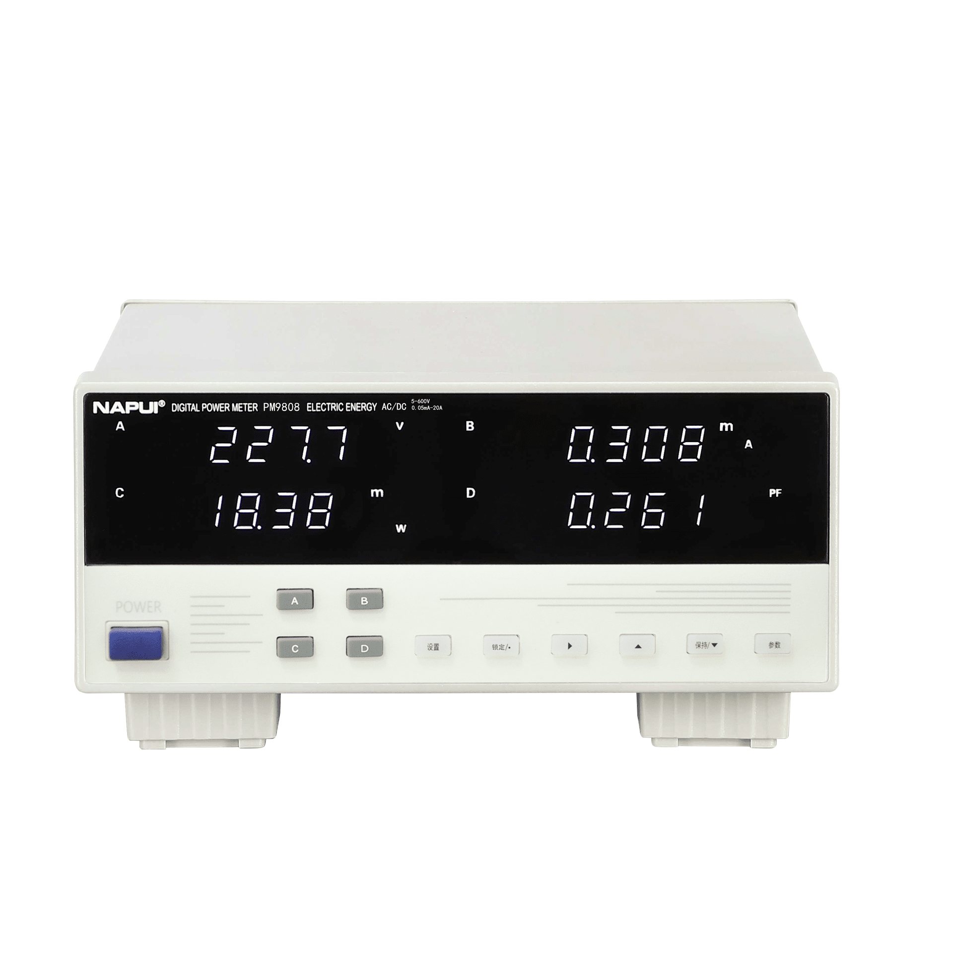 Voltage, Current, Active Power, Power Factor, Frequency, Energy Accumulation, Peak Voltage, Peak Current, Average Power