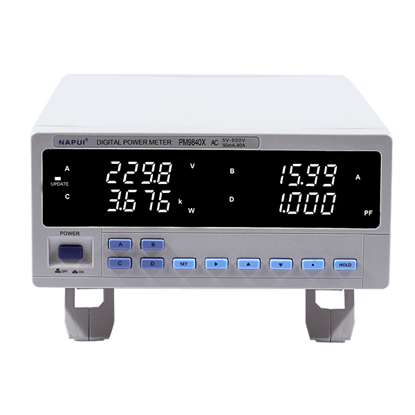Voltage V, Current A, Active Power W, Power Factor PF, Frequency Hz