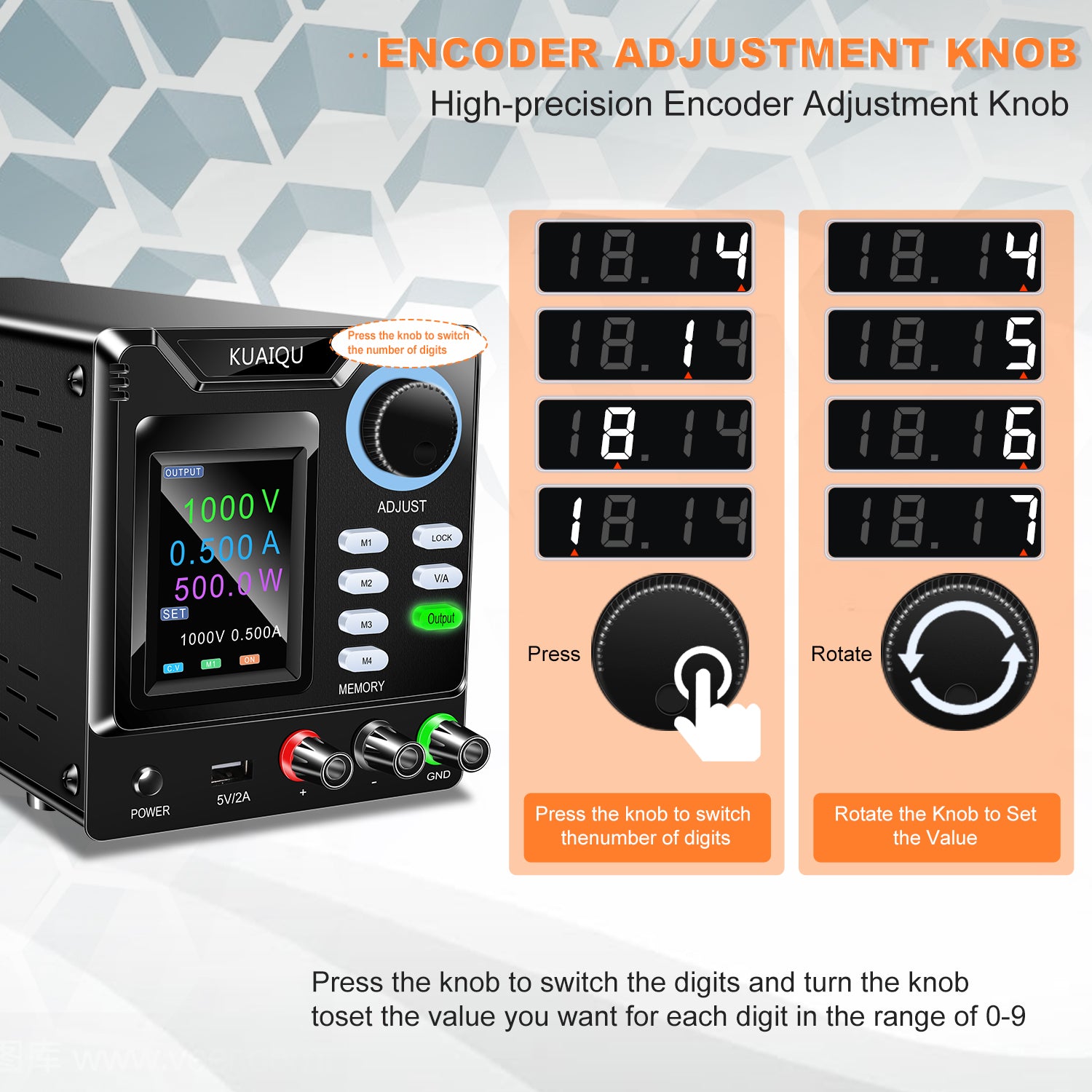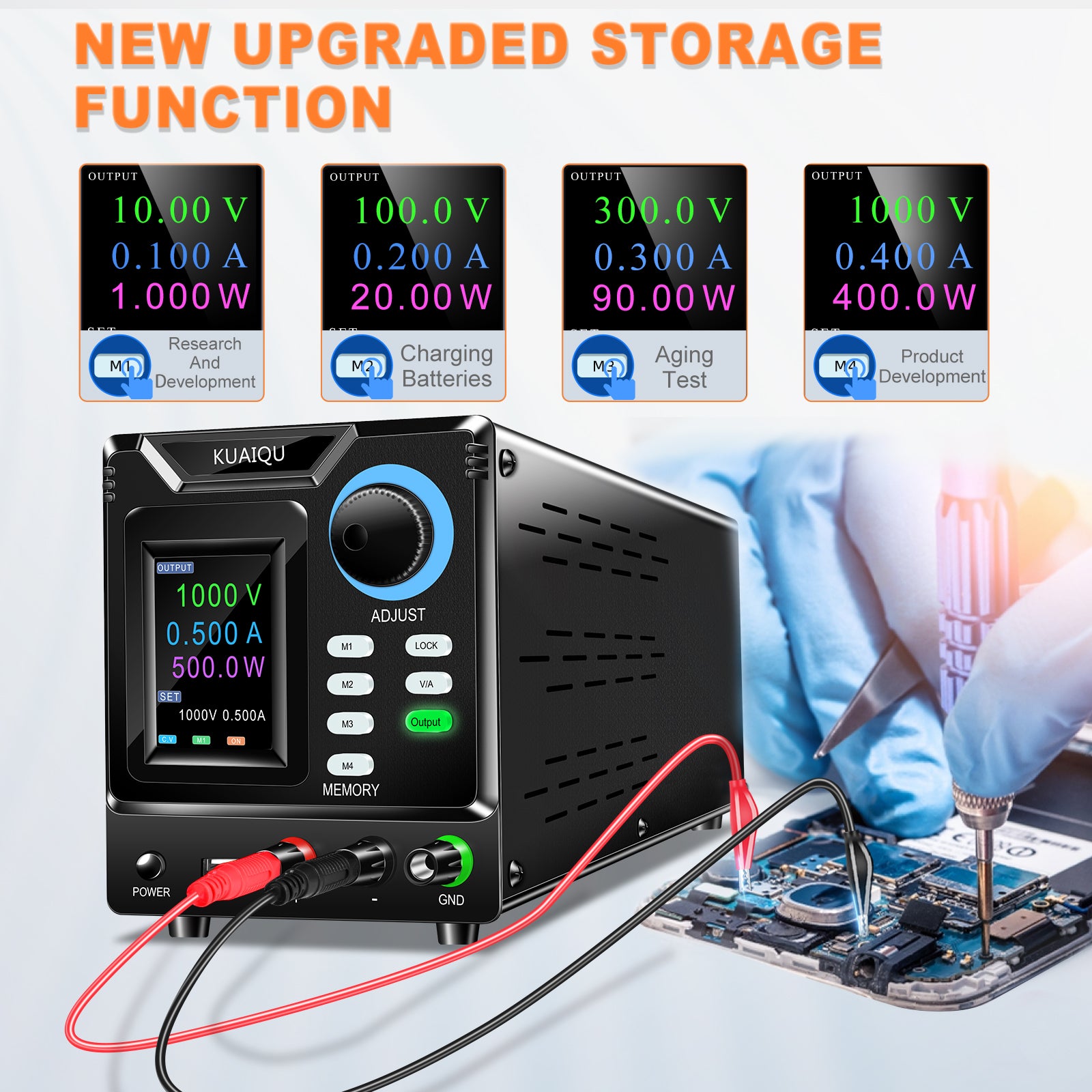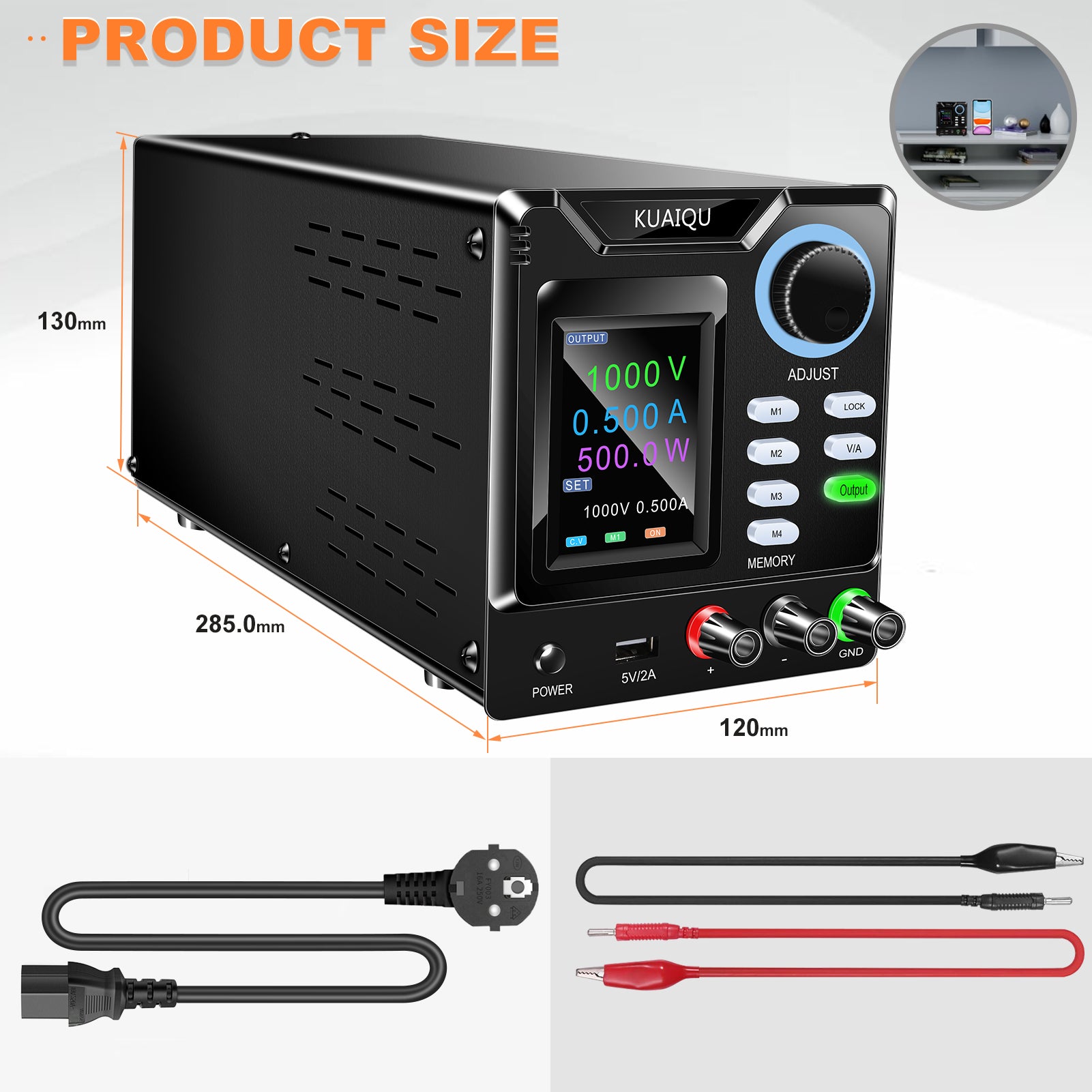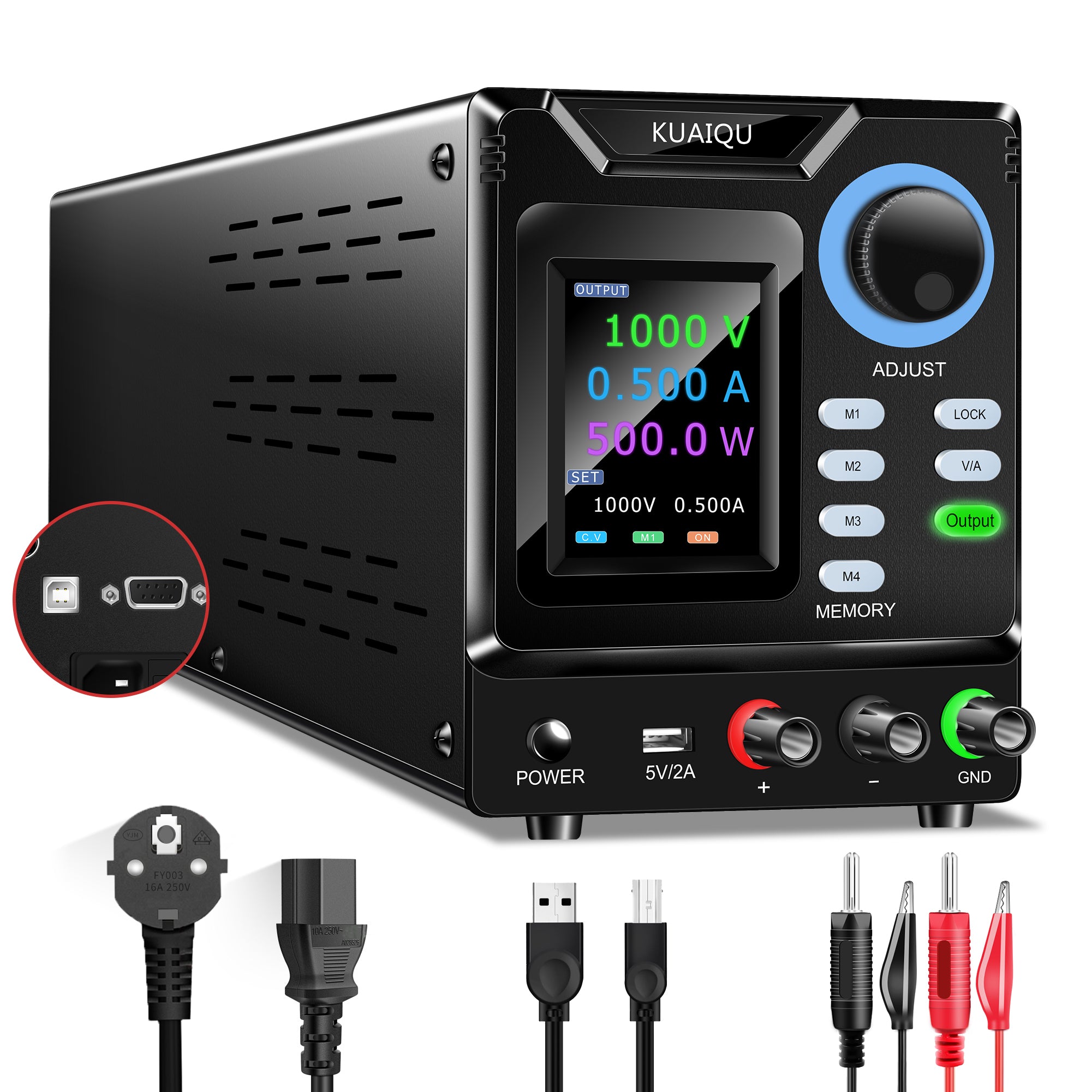 KUAIQU SPPS-D10005-232 - 1000V 0.5A High Voltage DC Power Supply with Full Color Display & Memory Presets for Fuel Cell Stack Testing